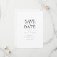 Este moderno cartão de salvar a data em preto e branco apresenta uma tipografia elegante de salvar a data acima dos seus detalhes em um texto elegante. Concebido por Thisisnotme©