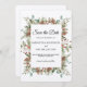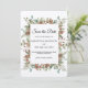 Anuncie seu dia especial com este elegante cartão Save the Date de folhagens de inverno, apresentando ramos de pinheiro pintados à mão em aquarela, folhas de eucalipto, pinhas e bagas quentes de inverno. A suave folhagem de inverno cria uma moldura romântica e atemporal em torno dos seus nomes.