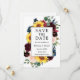 Armamento da Moldura Floral da Marsala, moderna Elegante, Salva o Cartão de Anúncio do Noivado de Data inclui rosas burguentos, rosas cor-de-rosa, flores vermelhas, flores azuis, girassóis, folhas de eucalipto e verde botânico.