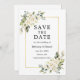 Watercolor Ivory White Floral Greenery Noivado de Casamento Salva o Cartão de Data inclui rosas brancas de marfim e verde botânico. Quadro Dourado