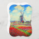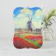 Cartão com a pintura de Claude Monet em flores e moinhos. Lindos e coloridos campos de tulipas vermelhas, cor-de-rosa e amarelas ao lado de um moinho de vento e casa na Holanda. Um presente de Monet excelente para fãs do impressionismo e da arte francesa.
