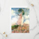 Guarde o Cartão de Data com a esposa de Claude Monet, Camille, segurando um parasol verde num belo campo cor-de-rosa a ser soprado pelo vento. Um presente de Monet excelente para fãs do impressionismo e da arte francesa.