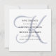 Esse casamento elegante salve a data que os convites mostram seu monograma em grandes textos na moda em azul empoeirado em fundo branco. Um simples e elegante olhar para o seu casamento moderno.