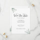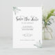 Quer que amigos e familiares saibam que vai se casar? Quer avisá-los quando e onde? Temos a resposta. O casamento chic salve a data design apresenta um buquê de aquarela eucalipto verde e um elegante conjunto sofisticado de fontes. O design tem um modelo de texto adicional na parte traseira (sim, valor agregado!) para detalhes adicionais, como RSVP, direções etc.