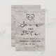 Madeira de passarinho russa talhada talhada com Cinza de Latido de árvore de passarinho branco e Design de de de passarinho branco, e um olhar patina afetuoso. Este design de madeira reivindicado apresenta as iniciais do casal gravadas na forma cardíaca dentro da árvore. Além disso, fontes chic country em tipografia angustiada, juntamente com uma elegante fonte de escrita manual vintage. O design é perfeito para um casamento de outono, inverno, primavera ou verão e pode ser usado para qualquer estação - Cartões de Datas de Casamento Personalizados! Veja meu compro para ver a suíte de casamento inteira para este design!