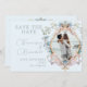 Uma nova e opulente era a temerária design de casamento. Apresentando belas cristas enquadradas em volta das suas iniciais Azul macio com tons de roxo azul e pinks em uma matiz pastel refletindo o tempo de regência. Vintage e design de casamento elegante. Altere facilmente as informações para o seu próprio design personalizado. Altere a imagem do espaço reservado com a sua própria fotografia. Elegante design de casamento formal.