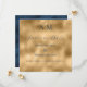 Belos monogramas da noiva e do noivo no topo deste lindo cartão de Salve a Data de casamento. Fundo dourado falso com fonte azul profunda para combinar com a parte de trás azul desgastada deste convite elegante. Absolutamente deslumbrante.