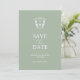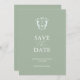 Anuncie o seu noivado com este moderno cartão de aviso de casamento. Ele apresenta uma mistura de tipografia clássica e cursiva em branco sobre um fundo verde-sage sólido. Insira o monograma dos noivos no centro de um brasão azul claro. Todas as cores podem ser personalizadas para se adequar à paleta de cores do seu casamento. Use os campos do modelo para personalizar com seu nome e data de casamento. Escolha entre uma variedade de papéis de alta qualidade. Meu favorito para este é o brilho pérola. Misture e combine com muitos dos meus desenhos para criar o tema do seu casamento personalizado. Um design sofisticado e elegante para casamentos e anúncios de noivado. Para ver o conjunto de papelaria de casamento correspondente, visite www.zazzle.com/dotellabelle