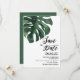 Imprima seus hóspedes (família e amigos) com elegância e charme usando nosso Cartão Salvar a data, apresentando brisa tropical com folha monstera e belamente letra escrita à mão. Criado com cuidado, este cartão de identidade oferece um estilo e charme para expressar entusiasmo e alegria aos seus entes queridos. A fonte escrita à mão adiciona um toque de sofisticação e refinamento à sua mensagem para circundar a data em calendários.