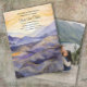 Cartão de salvar data de casamento de montanha roxa e dourada com aventura. Personalizado com sua foto no verso. Compre cópias impressas ou encomende digital para compartilhar com amigos e familiares por e-mail ou nas redes sociais.
