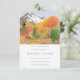 Montanhas de Aquarela de Outono Árvores de Pinheiro Foto Save the Date - Uma paisagem montanhosa deslumbrante e feita em aquarela é apresentada em nosso Save the Date em uma paleta de cores de outono lindíssima. Uma tipografia moderna e minimalista também é apresentada com uma foto do casal feliz no verso do convite/anúncio. O Save the Date faz parte de uma coleção.