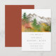 Montanhas de Aquarela de Outono Árvores de Pinheiro Salvar a Data - Uma paisagem montanhosa de aquarela deslumbrante é apresentada em nosso Salve a Data em uma bela paleta de cores de outono. Tipografia moderna e minimalista também é apresentada. Salve a Data faz parte de uma coleção. O verso do convite é mostrado como ferrugem, no entanto, você pode facilmente mudar a cor do fundo para a cor que desejar. Também estará disponível com foto.