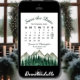 Este casamento Salve o cartão de data é rústico e desarrumado, mas elegante e bonito. Ele apresenta uma paisagem aquosa de picos robustos de montanha com pinheiros no primeiro plano. A design inclui um calendário personalizável do mês do seu casamento com um coração à volta do dia especial. A parte de trás é uma cor verde da floresta marmoreada. Maneira perfeita de deixar seus amigos e família saberem sobre seu próximo casamento.