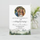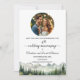 Um elegante Aniversário de Casamento Salve o Cartão de Data com montanhas de aquarela e pinheiros e uma foto especial que você pode personalizar com seus detalhes.