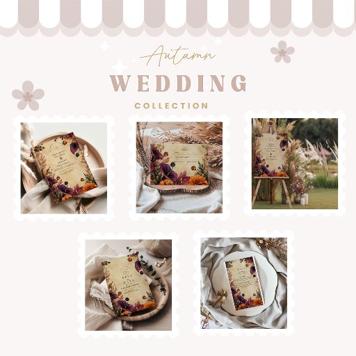 Ponha o tom para uma celebração de outono corajosa e romântica com este moody design de casamento floral. Apresentando lírios de plum profundo, flores de laranja queimadas e tons de safra quente, é perfeito para uma elegante cerimônia de outono. Totalmente editável com seus detalhes.