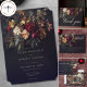 This stunning dark gothic photo wedding save the date card features a luxurious moody and slightly withered floral arrangement in deep jewel tones over a black background. Perfect for a mysterious and romantic fall or winter ceremony. This dramatic design is ideal for couples seeking a non-traditional, opulent or vintage style. Created by Simply Farmhouse Press.