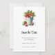 Salve o cartão de data com um gráfico de verão de um monte de morangos transbordando em um balde.