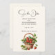 Salve o cartão de data com uma nova vibração de verão. Uma ilustração fofinha com morangos colhidos frescos enchendo um cesto mais fraco.