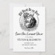 Anuncie seu compromisso eterno com uma salva de data tão eterno e única quanto seu amor. Este design preto e branco impressionante apresenta um casal elegante de esqueleto num abraço romântico, enquadrado por belos rosas, incorporando o voto "Até a Morte Nos Faz Parte". Perfeito para casais planejando um casamento gótico, alternativo ou inesquecível de Halloween, este cartão estabelece um tom belamente escuro e romântico para o seu dia especial. Personalize facilmente a modelo com seus nomes e data de casamento para anunciar formalmente seus núpcias futuros.