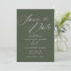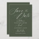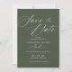 Salve as datas simples e elegantes com o texto "Salvar a Data" em um script inspirado na safra. Fonte branca contrastante em um fundo verde escuro.