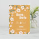 Anuncie seu dia especial com estilo com este lindo cartão Save the Date. Com um fundo mostarda ousado, ilustrações florais caprichosas e tipografia retrô funky, este design captura o espírito do romance dos anos 70 com um toque moderno boho. Perfeito para casais que planejam um casamento divertido, elegante e inesquecível, seja uma festa de jardim de verão ou uma celebração rústica boho. Personalize com seus nomes e detalhes do casamento para definir o tom de uma história de amor verdadeiramente maravilhosa.