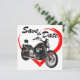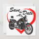 Este convite exclusivo para Salvar a Data apresenta um coração vermelho pintado com uma motocicleta preta de dois assentos. Perfeito para um casal de bicicleta! Personalize facilmente esta opção Salvar a Data com todos os detalhes do seu casamento.
