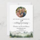 Um elegante Aniversário de Casamento Salve o Cartão de Data com montanhas de aquarela e pinheiros e uma foto especial que você pode personalizar com seus detalhes.