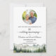 Um elegante Aniversário de Casamento Salve o Cartão de Data com montanhas de aquarela e pinheiros e uma foto especial que você pode personalizar com seus detalhes.