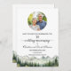 Um elegante Aniversário de Casamento Salve o Cartão de Data com montanhas de aquarela e pinheiros e uma foto especial que você pode personalizar com seus detalhes.