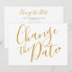 Este cartão de mudança de data de letra dourada chic tem as informações de adiamento no verso junto com o seu site. Perfeito para casamentos, chá de noiva, chá de bebê, batizados, festas de noivado, celebrações de aniversário, graduações, encontros de aniversário e outros eventos especiais ao longo do ano. Uma maneira encantadora de manter seus convidados atualizados! Criado por Thisisnotme©