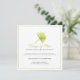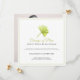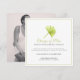 Um simples cartão de mudança de plano de casamento com uma folha de palmeira em arte de aquarela, texto preto e verde, e em um fundo branco com uma foto no verso. Deixe seus convidados saberem que seu casamento ou outro evento foi cancelado ou adiado devido a circunstâncias imprevistas. Outros itens correspondentes estão disponíveis. Arte e design simples de folhas tropicais em aquarela por Sarah Trett para www.mylittleeden.com
