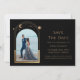 Mística Chic Black Sun Dourado Sun Star Space Save As Dates apresentam um sol dourado, lua e estrelas armadas sobre um fundo preto elegante. Dentro é a sua foto favorita e o seu personalizado salva as informações de data. Personalize editando o texto nas caixas de texto. Projetado para você por ©Evco Studio www.zazzle.com/store/evcostudio