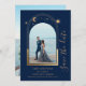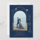 Mística Azul Dourada Sun Moon Star Space Save As Dates apresentam um sol dourado, lua e estrelas armadas sobre um fundo azul marinho escuro. Dentro é a sua foto favorita e o seu personalizado salva as informações de data. Adicione uma foto adicional no verso. Personalize editando o texto nas caixas de texto. Projetado por ©2022 Evco Studio www.zazzle.com/store/evcostudio