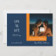 Este simples design moderno apresenta as informações personalizadas Salvar a data e a foto favorita em um fundo azul com sotaque laranja. Personalizado editando o texto nas caixas de texto fornecidas #savethedate #casamento #weddingstationery #personalizado #personalizedstationery #weddinginspo #customriage