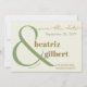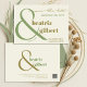 O verde-musgo e o verde-oliva, num fundo creme, dão um toque orgânico original a este moderno, salvo a data. Seus nomes se encaixam nas curvas graciosas do grande e grande homem. A tipografia da na moda energiza sua elegante primeira impressão com seus convidados. O script cursivo suave anuncia "salve a data". Adicione a data e a localização do casamento. Seus nomes, data do casamento e local são proeminentes na frente do cartão O verso inclui espaço para uma mensagem adicional e tem um código QR para seu site de casamento.