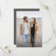 Esta fotografia simples, mas na moda, para salvar o cartão de data é a forma perfeita de anunciar o seu noivado e o seu próximo casamento aos amigos e à família. A frente desta vertical salve a data com um tratamento moderno em branco na parte inferior de uma foto de solteiro. A parte de trás é uma cor de carvão chico com uma segunda foto junto com a sala para uma mensagem personalizada que pode incluir detalhes do fim de semana do casamento, seu site de casamento e mais script de assinatura. Este original que salvou a data de Lea Delaveris Design é perfeito para casais engajados com na moda e faz parte de uma coleção onde você pode encontrar mais cores e estilos. Isso também está disponível para salvar a data de download digital.