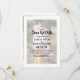 Anuncie a alegre notícia do seu noivado e do próximo casamento com fotos personalizadas únicas, salve os convites de data. As duas imagens e todos os textos neste modelo são simples de personalizar. (DICA DE IMAGEM: Uma maneira fácil de centralizar uma foto exatamente como você deseja é recortá-la antes de carregá-la no site do Zazzle.) O design a preto e branco apresenta duas imagens do casal engajado sobrecarregado com a moderna tipografia minimalista e a caligrafia com escrita manual na moda. Esta única nota de anúncio é uma maneira elegante de informar amigos e familiares sobre a sua próxima celebração especial. Parabéns para a noiva e o noivo!