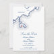 Anuncie seu casamento em North Shore com este elegante Nahant azul marinho, foto do mapa do MÃE salvando o cartão de data. Perfeito para casamentos costeiros, ele complementa lindamente lugares como Oceanview of Nahant, The Nahant Country Club, e The Beach Club. Mostre a sua foto favorita no verso e desfrute do endereçamento de envelope gratuito para maior conveniência. Este na moda salva a data define o tom para uma celebração memorável à beira-mar. Trabalho de arte por Designs de Mapa Costeiro.
