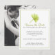 Mudança de planos não salve a data cartão de palmeira em aquarela branca e verde com uma foto recente do casal no verso. Deixe seus convidados saberem que seu casamento ou outro evento foi cancelado ou adiado devido a circunstâncias imprevistas. Outros itens correspondentes estão disponíveis. Pintura original de palmeira tropical em aquarela e design por www.mylittleeden.com