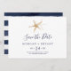 Esta moderna horizontal náutica de estrelas-do-mar, exceto o cartão de data é perfeito para um casamento de cruzeiro ou praia. O simples design apresenta estrelas douradas.