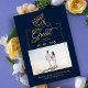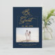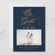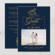 Navy Blue & Golden Sophisticated Minimalist Photo Elegant Script Save the Date Card with Envelope.