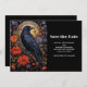Salve o cartão de data com um corvo preto preso em um galho cercado por flores vermelhas. Legal vibração gótica.