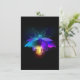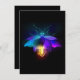 Voz mecânica, antiga, com lâmpada e asas finas brilha cor de laranja, roxo, turquesa sobre fundo preto. Estilo Steampunk.