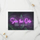 Moderno Neon Tropical Greenery Salve o Cartão de Data. Personalize esta tendência e design de na moda com seus detalhes e mensagem de casamento.