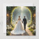 Imagem É Uma Imagem Encantadora De Uma Noiva E De Um Alcance Passando Por Uma Margem De Rosas Brancas Em Uma Floresta Mágica. Você Pode Personalizar Completamente Este Convite Com Suas Próprias Imagens E Textos.