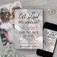 Anuncie a alegre notícia de sua próxima celebração de casamento somente na recepção com a única camada personalizada de fotos "No Último Vamos Celebrado", salve os convites de data. Toda a redação é simples de personalizar para uma cerimônia de renovação de votos, casamento sequel, aniversário de 1rua ou festa de elopemento poste. Inclua a data do casamento, o local, o site ou quaisquer outros detalhes importantes de sua escolha. (DICA DE IMAGEM: Uma maneira fácil de centralizar uma foto exatamente como você deseja é recortá-la antes de carregá-la no site do Zazzle.) O elegante design branco e preto chic apresenta duas imagens do novo casal, a moderna caligrafia moderna com script, e a tipografia da máquina de escrever na moda. Se você fugiu, teve um menor mínimo de tamanho reduzido/microcasamento, ou sua celebração especial teve que ser remarcada devido a um adiamento pandêmico, o feliz para sempre depois da festa ainda pode começar. Parabéns para a noiva e o noivo!