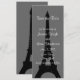 Sombras sutis de cinza, roteiro de rico e elegância da Torre Eiffel decoram este convite, que faz parte da linha de casamento de cheio, noite em Paris. É apresentado no papel de base; no entanto, recomendo o peso e a textura do papel de linho.