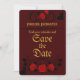 Entra num romance de storybook com os nossos Cartões salve a data Encantados da Noite. Criado para casais que apreciam a magia dos contos de fadas, cada convite é um prelúdio para a sua alegria eternidade. Adorados com rosas florescentes e silhuetas eternos de amor e celebração, estas cartas chamam seus convidados para marcar seus calendários para um evento inesquecível. Personalize com seus nomes e data especial no verso e comece sua jornada pelo corredor com um anúncio tão encantador quanto seu amor.