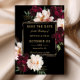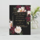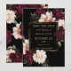 Personalize este convite de casamento elegante fácil e rapidamente. Basta clicar no botão Editar Usando Ferramentas de Design para editar o texto, alterar as fontes e as cores das fontes. Apresenta lindas flores de peônia burgundy e blush realistas contra um fundo preto vibrante. Itens correspondentes disponíveis na loja. (c) Somerset Fine Paperie
