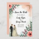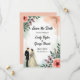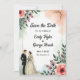 Esta elegante floral de aquarela salva o convite de data é perfeito para um casamento moderno. A design romântica apresenta uma elegante estrutura floral de aquarela com uma ilustração noiva e noiva e caligrafia preta sobre fundo branco.